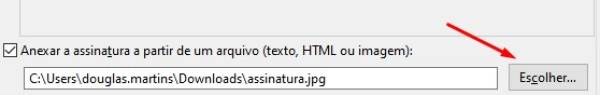Marque a caixa de seleção escrita Anexar a assinatura a partir de um arquivo, e clique em Escolher