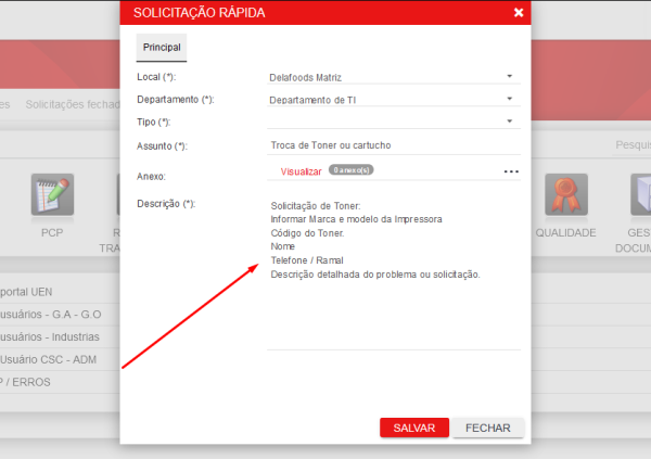 - No Chamado sempre Preencher os dados solicitados. Deve sempre informar Marca, Modelo da Impressora, Número de Série e se possível Modelo do Toner (Caso saiba). Desta forma evita enviar comentários no chamado para coletar essas informações e correr o risco de não ser enviado no malote no mês solicitado;