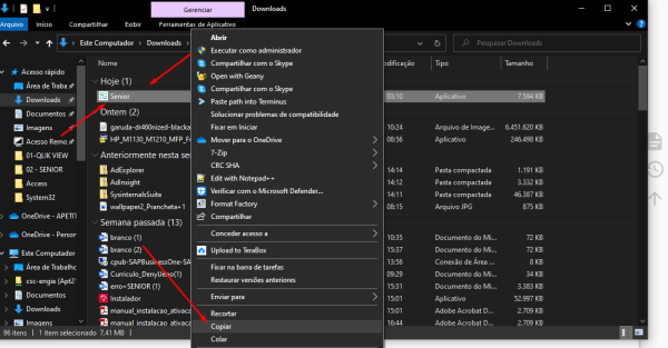 Basta copiar o arquivo baixado na pasta Downloads e COLAR na Área de trabalho: