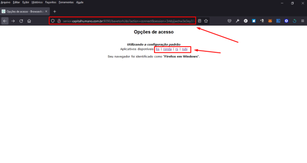 Basta selecionar o módulo desejado do Senior (BS, RONDA, RS ou RUBI)