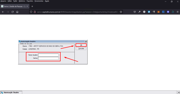 Agora basta colocar o seu login e senha do Senior para autenticar!